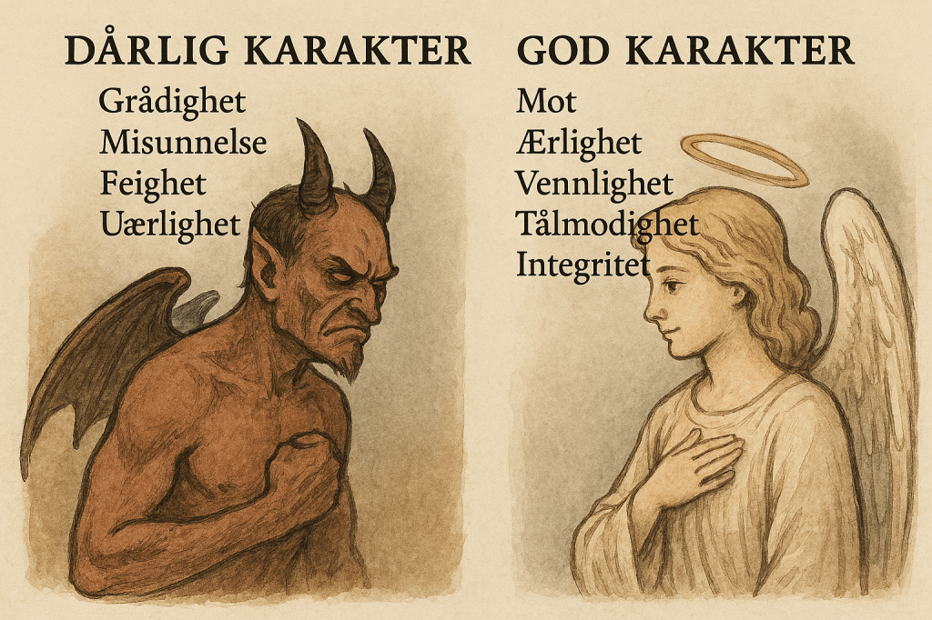 Dårlig karakter: Dette handler om egenskaper eller vaner som fører til destruktiv, egoistisk eller skadelig atferd – for eksempel grådighet, misunnelse, feighet og uærlighet.